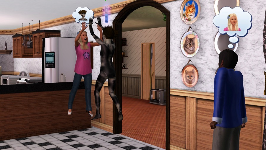 Katoin, että pitääkö ne toisiaan kädestä kiinni :D Amity tulee uuden äitipuolen kanssa toimeen oikein hyvinkin. Harmittaa, kun hävitin Andrew'lta kosintatoiveen (kävin kurkkimassa toista perhettä ja jostain syystä SP:n toiveensäilytysasetus oli menny pois päältä). Mutta naimisiin mennään viimeistään sitten, kun toive ilmestyy uudelleen!