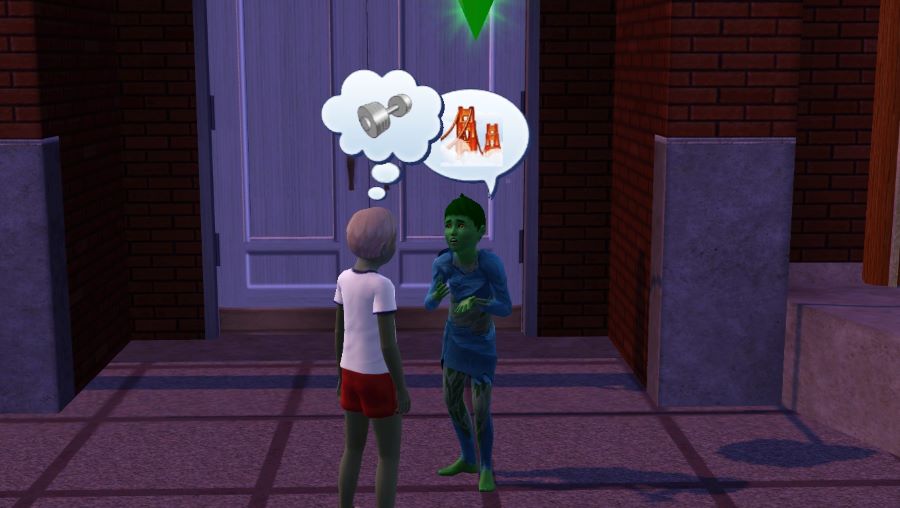 Marrowilla on joku bugi. Yhteisötontilla se päättää yhtäkkiä tehdä läksyt, ei siinä mitään. Mutta kun se ottaa läksykirjan esille, se lähteekin hitaasti kävelemään kotia kohti kirja kädessä... Toimintoa ei voi peruuttaa muuten kuin resetsimillä. Tuo tapahtui useammin kuin kerran tämän pelisession aikana.
